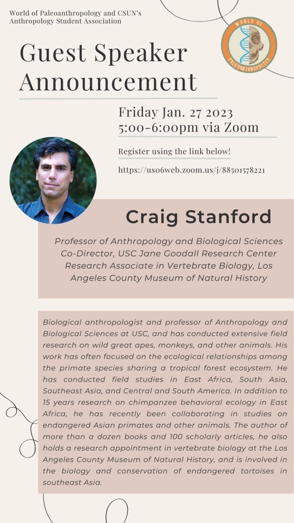 Coming up this week, we have Dr. Craig Stanford! A good friend of WOPA.