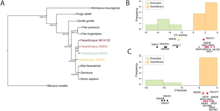 4 dental specimens (SK 850, SK 835, SK 830, and SK 14132) from Swartkrans belonging to Paranthropus robustus cave were sampled. By using mass spectrometry, hundreds of amino acids from the tooth enamel of the specimens. One significant protein found is amelogenin-Y. This protein is produced by the AMELX gene.